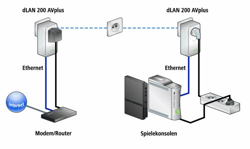 - dLAN® 200 AVplus stellt schnell und einfach eine Netzwerkverbindung über das hausinterne Stromnetz her